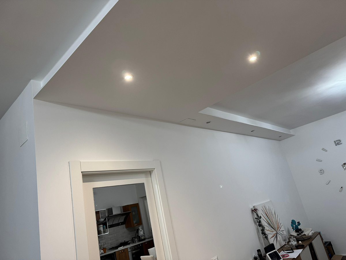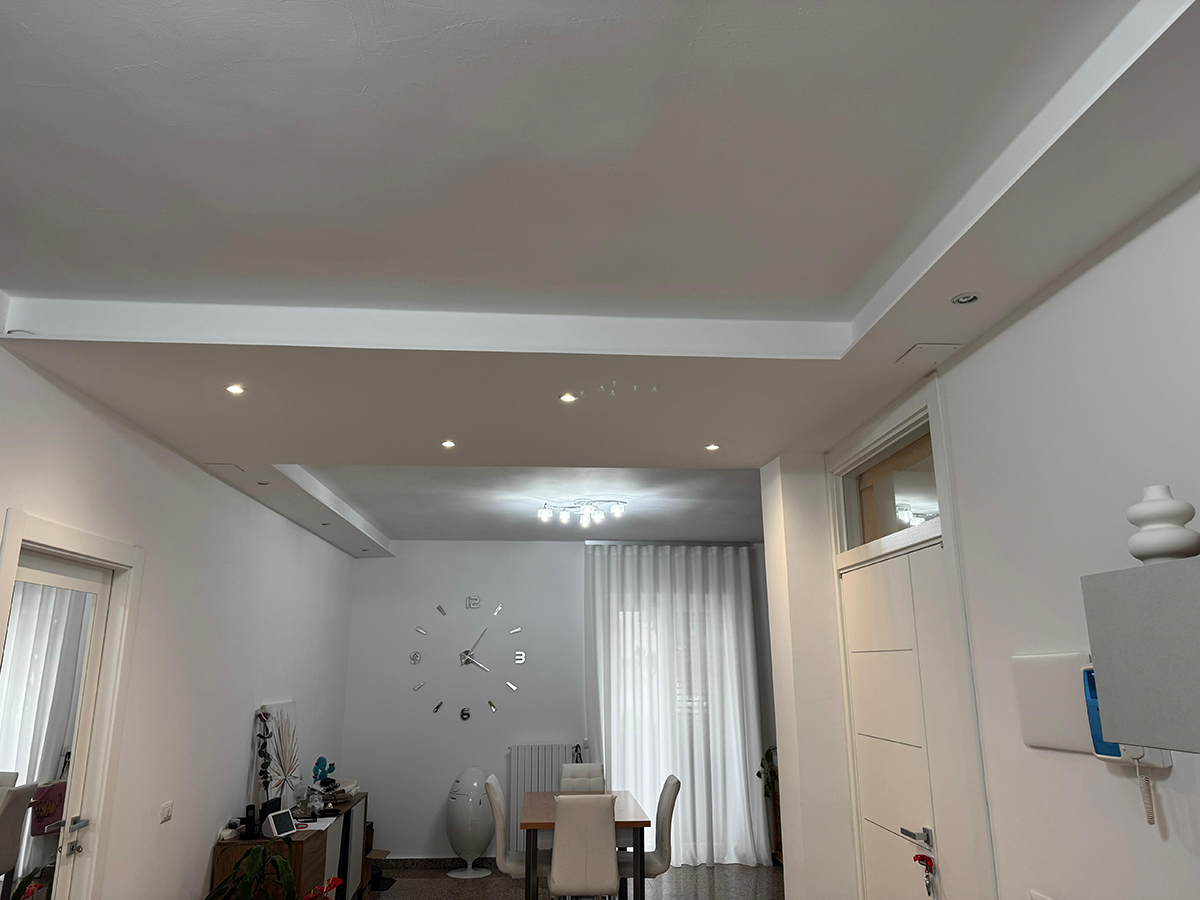 Realizzazione di controsoffitti, pareti divisorie, velette, nicchie e lavorazioni artistiche in cartongesso, studiate per valorizzare gli spazi.